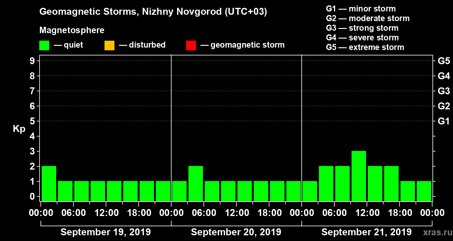 Geomagnetic storms in Nizhny Novgorod on Sep 21, 2019