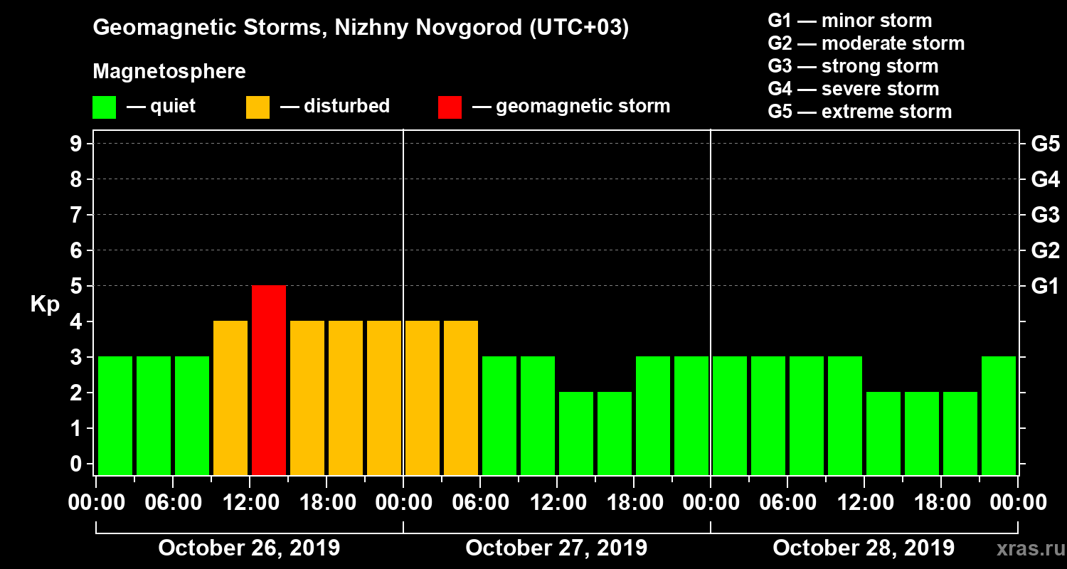 Geomagnetic storms in Nizhny Novgorod on Oct 28, 2019