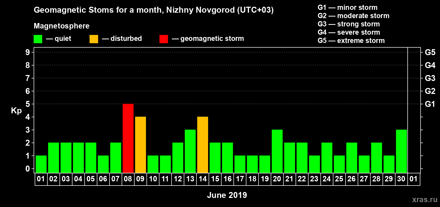 08 June 2019 — Magnetic storm of level G1