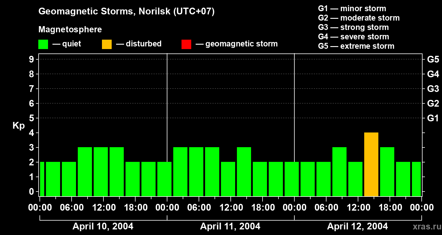 Geomagnetic storms in Norilsk — Apr 12, 2004