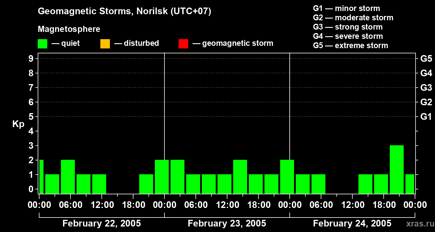 Geomagnetic storms in Norilsk — Feb 24, 2005