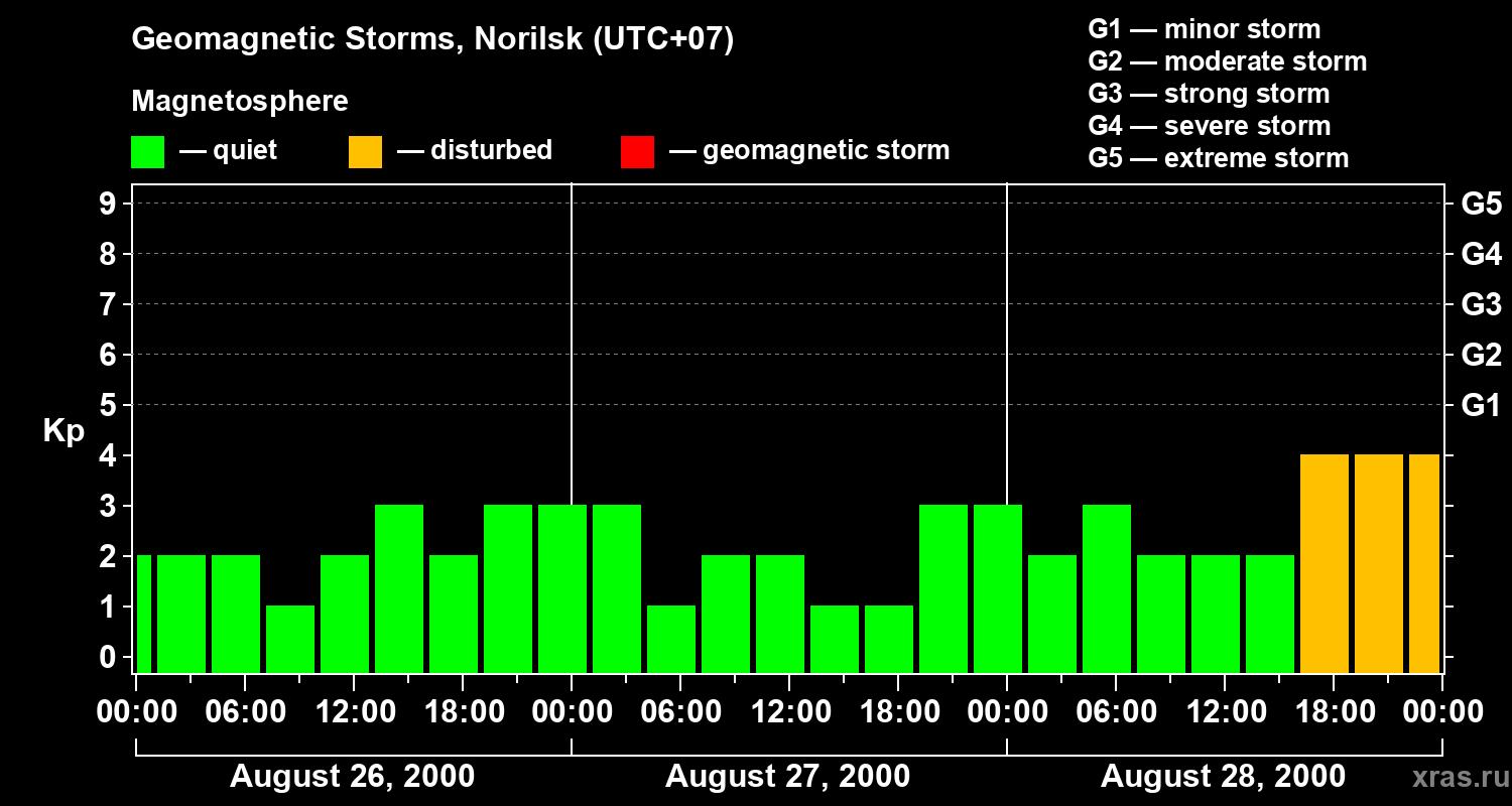 Geomagnetic storms in Norilsk — Aug 28, 2000