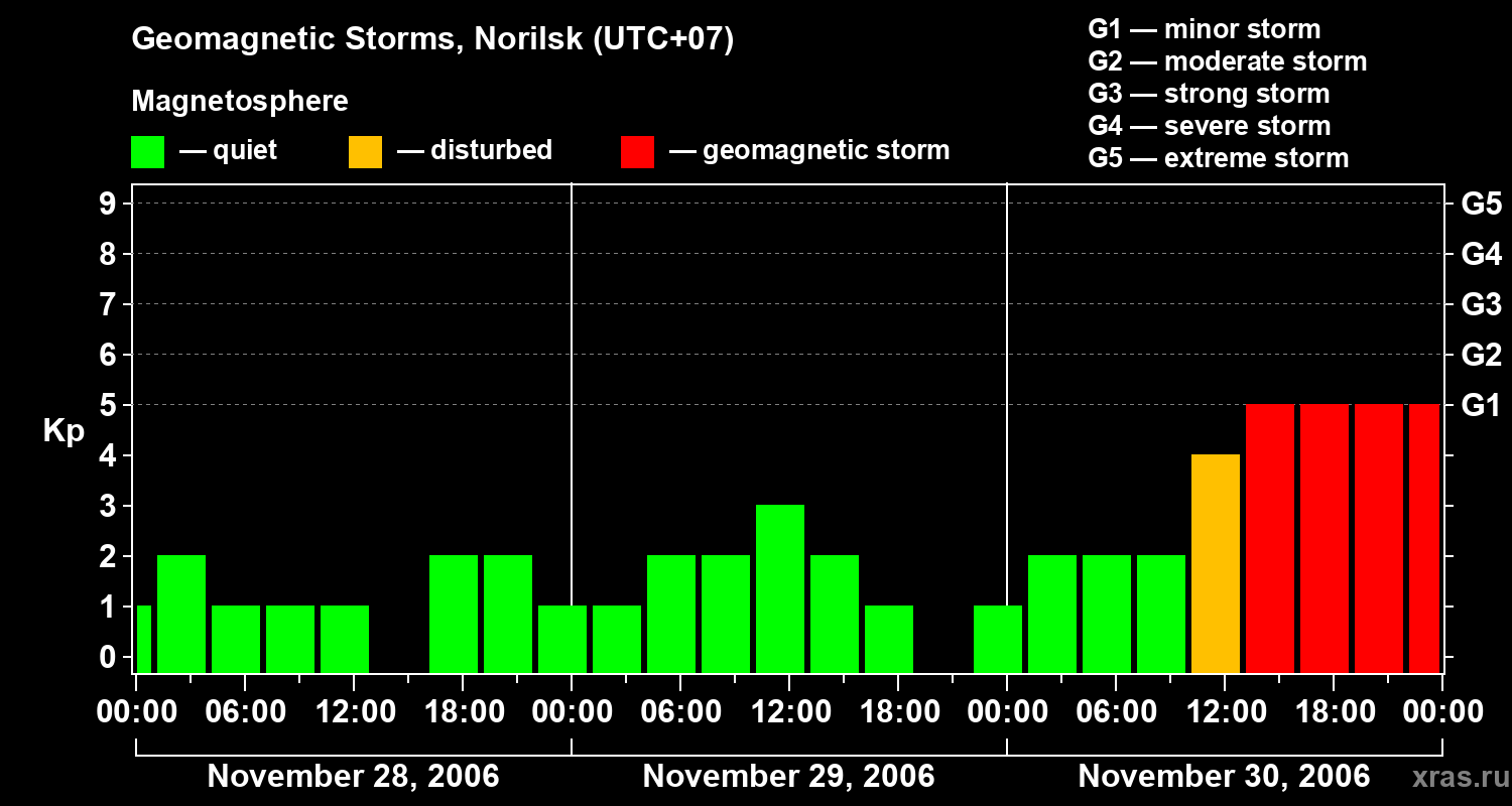Geomagnetic storms in Norilsk — Nov 30, 2006