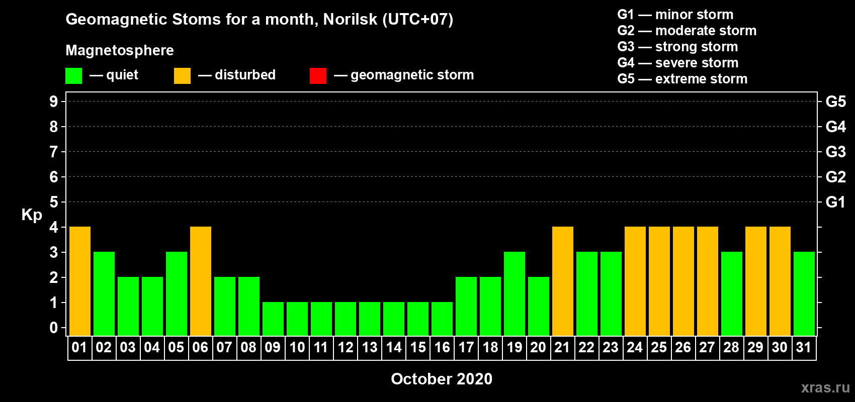 Geomagnetic storms in Norilsk — Oct 31, 2020