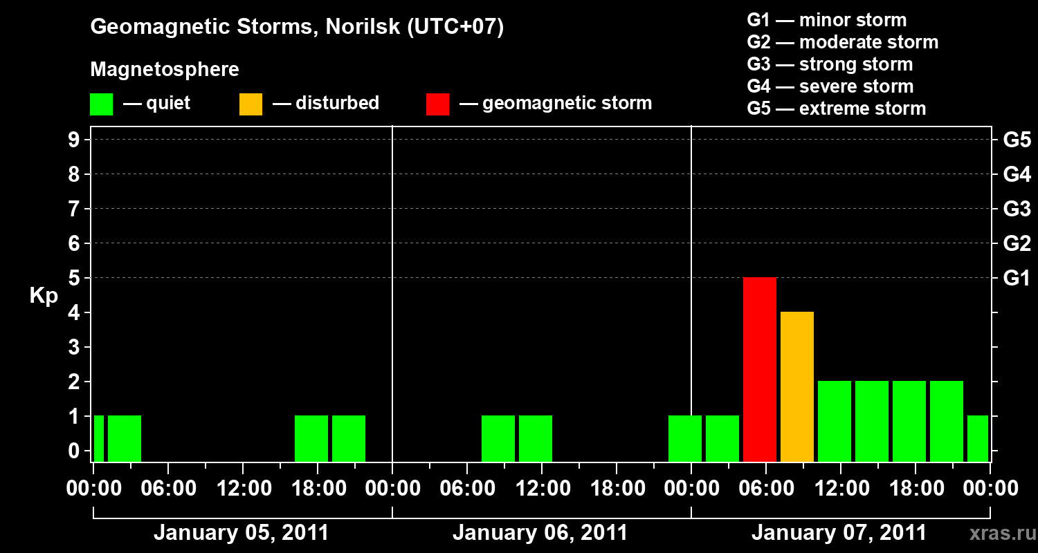 Geomagnetic storms in Norilsk on Jan 07, 2011