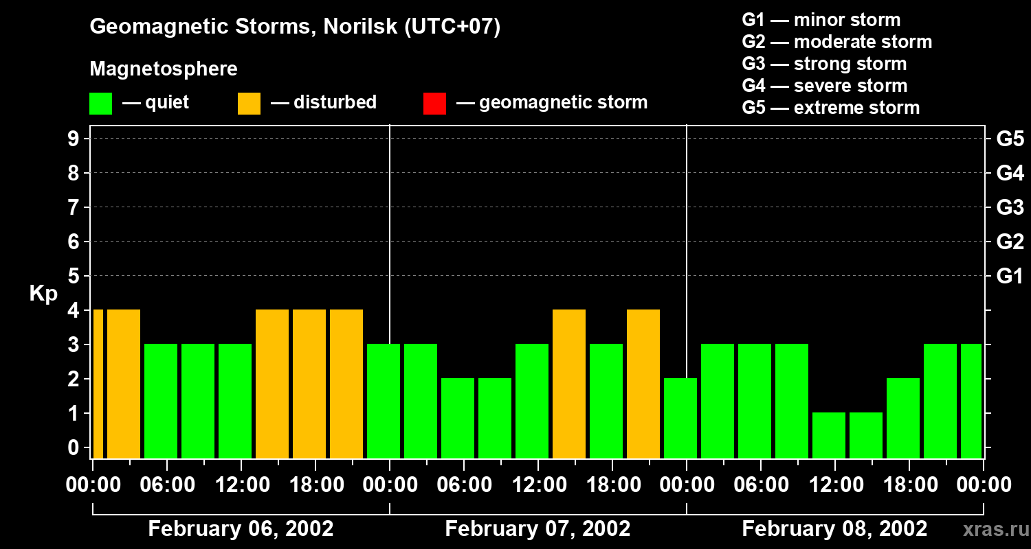 Geomagnetic storms in Norilsk — Feb 08, 2002