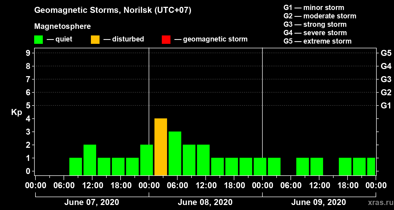 Geomagnetic storms in Norilsk — Jun 09, 2020