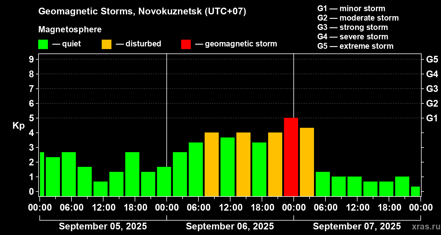 Geomagnetic storms in Novokuznetsk — Sep 07, 2025