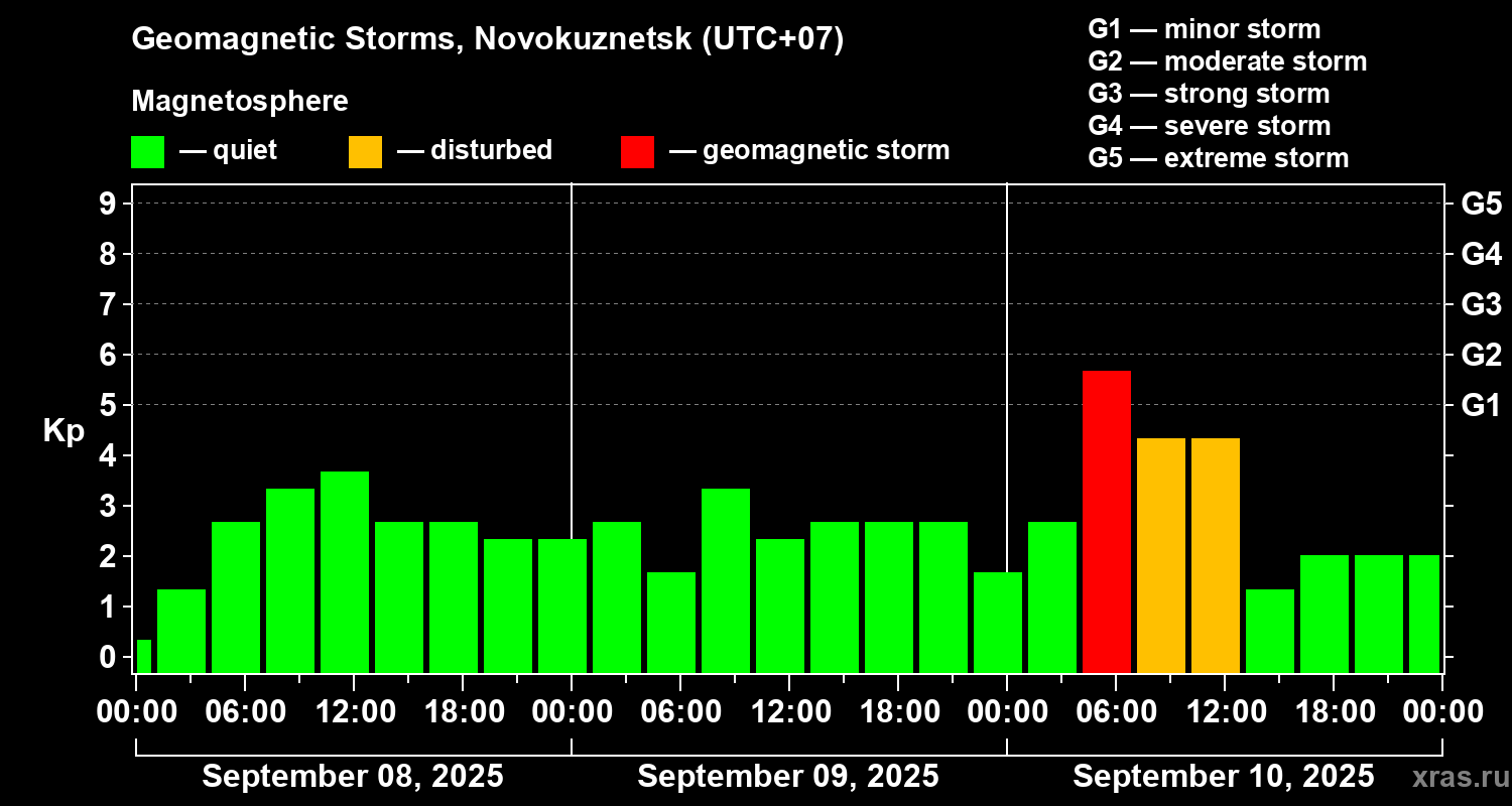 Geomagnetic storms in Novokuznetsk — Sep 10, 2025