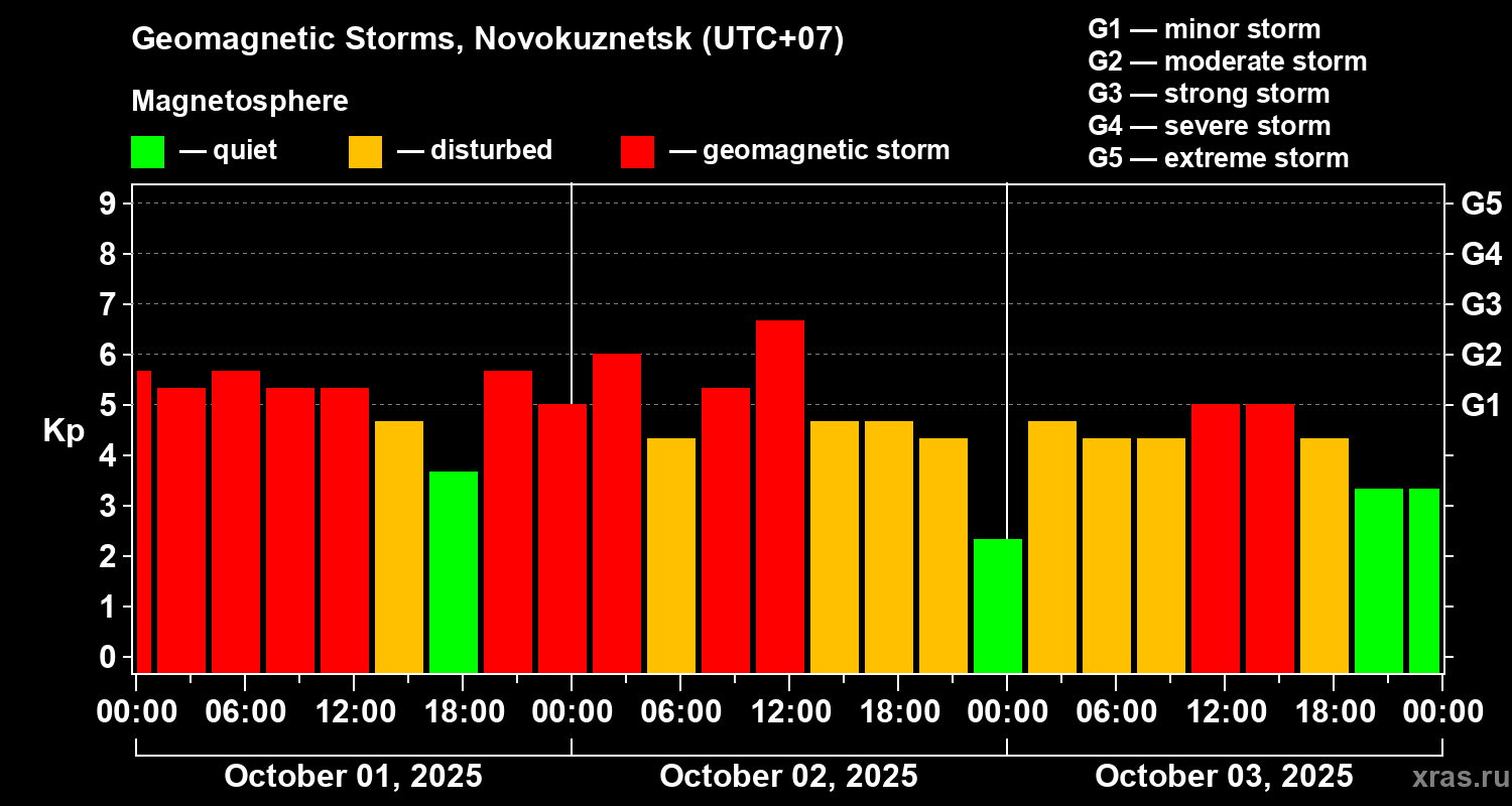 Geomagnetic storms in Novokuznetsk — Oct 03, 2025