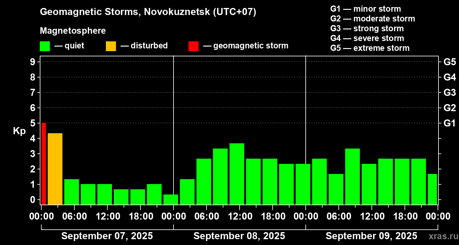 Geomagnetic storms in Novokuznetsk — Sep 09, 2025