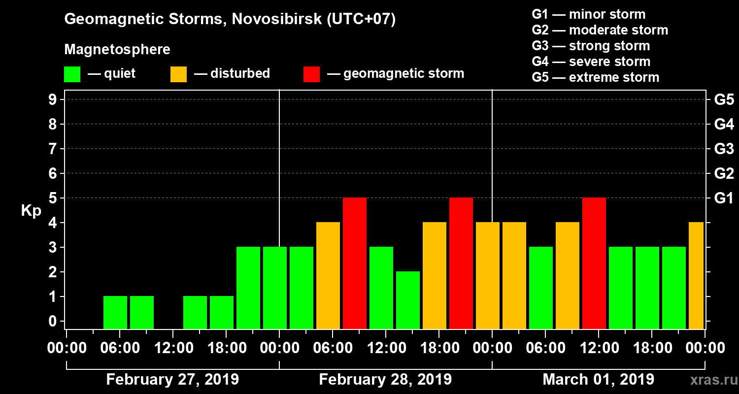 Geomagnetic storms in Novosibirsk on Mar 01, 2019