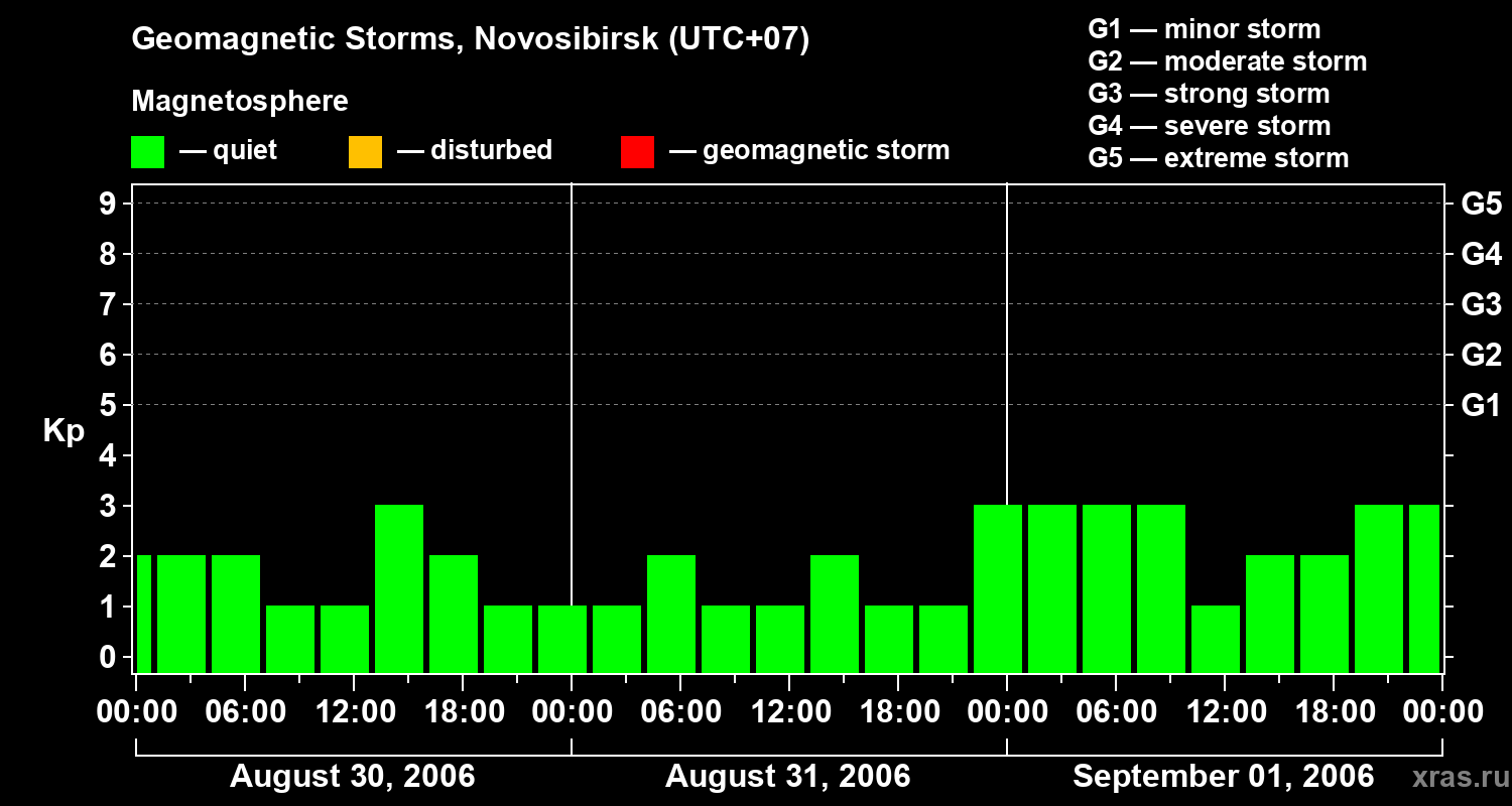 Geomagnetic storms in Novosibirsk on Sep 01, 2006