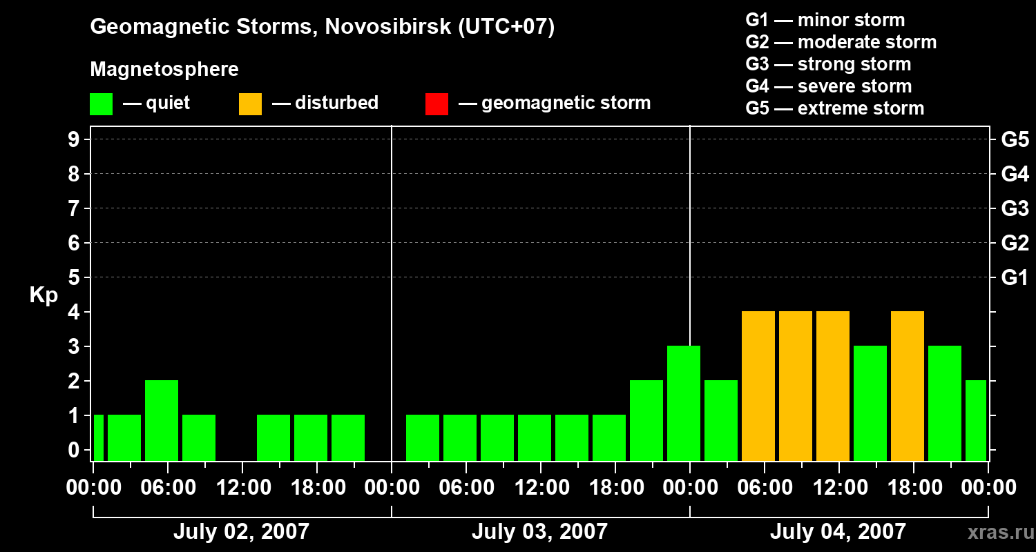 Geomagnetic storms in Novosibirsk on Jul 04, 2007
