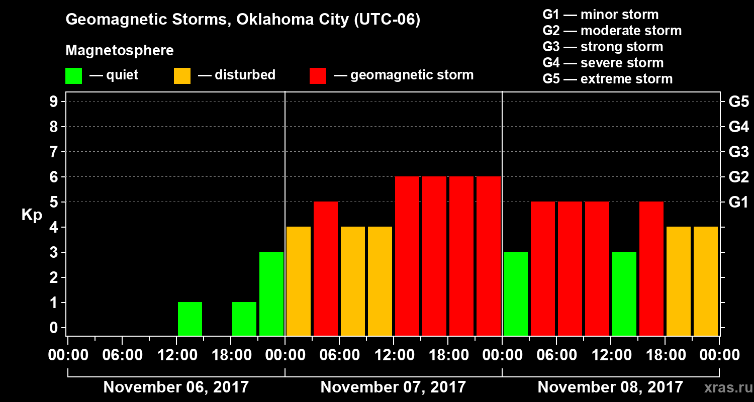 Geomagnetic storms in Oklahoma City on Nov 08, 2017