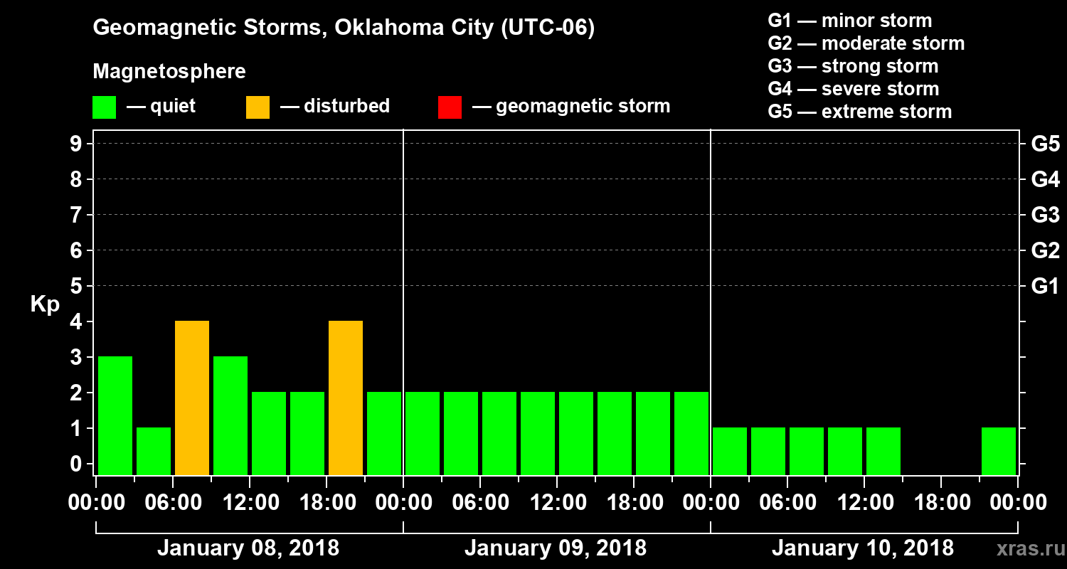 Geomagnetic storms in Oklahoma City on Jan 10, 2018