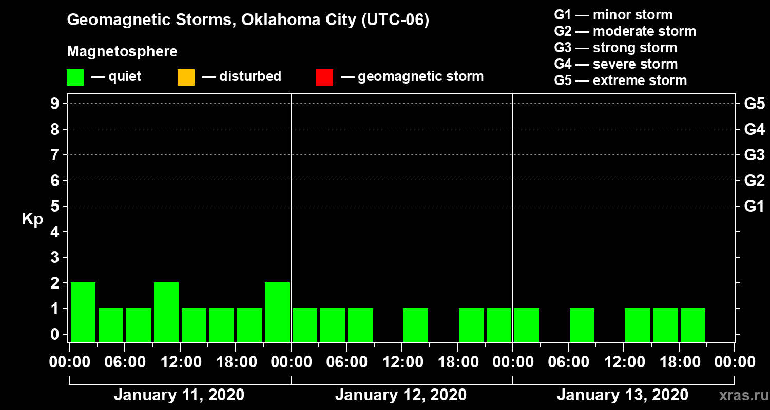 Geomagnetic storms in Oklahoma City on Jan 13, 2020