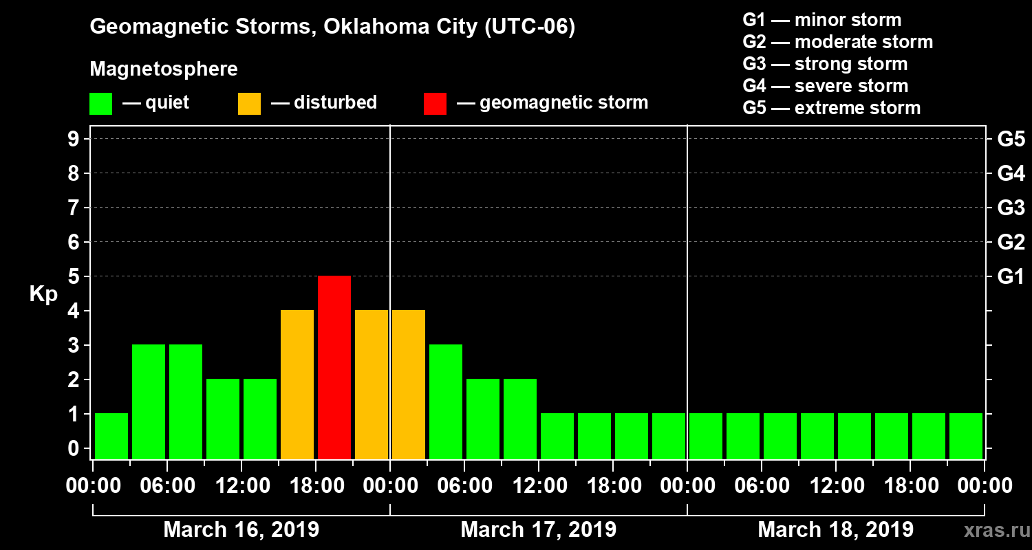 Geomagnetic storms in Oklahoma City — Mar 18, 2019