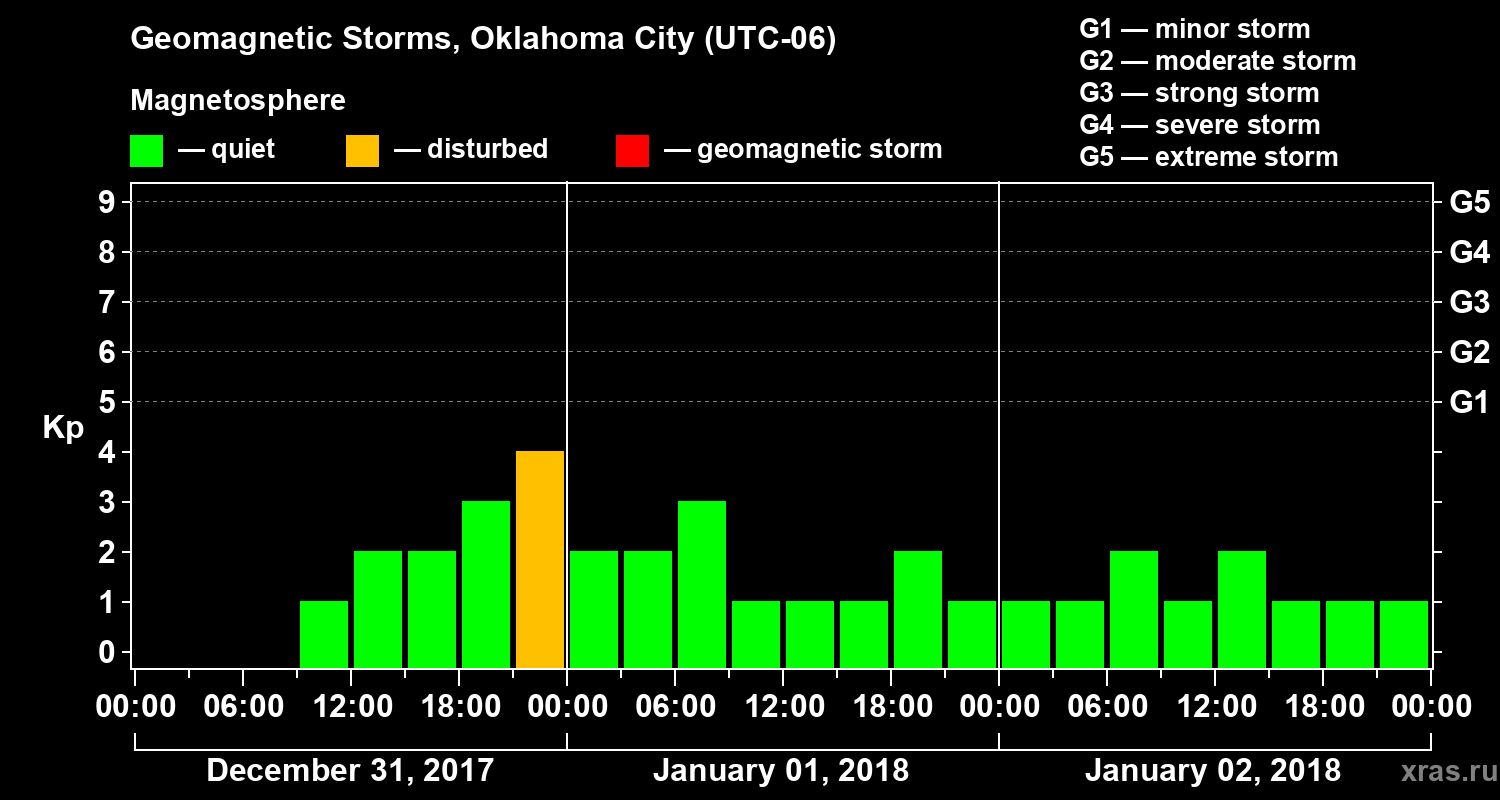 Geomagnetic storms in Oklahoma City on Jan 02, 2018