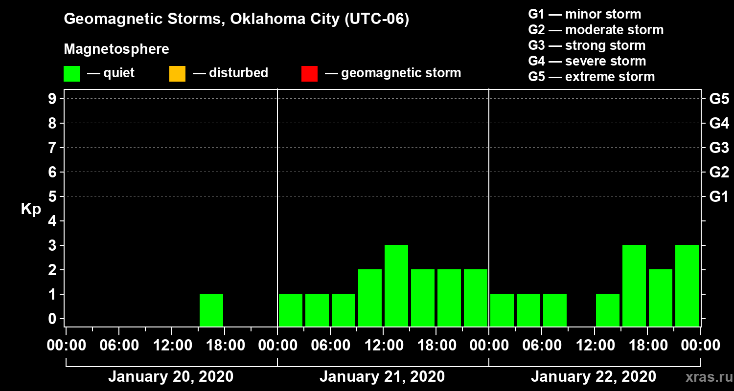 Geomagnetic storms in Oklahoma City — Jan 22, 2020