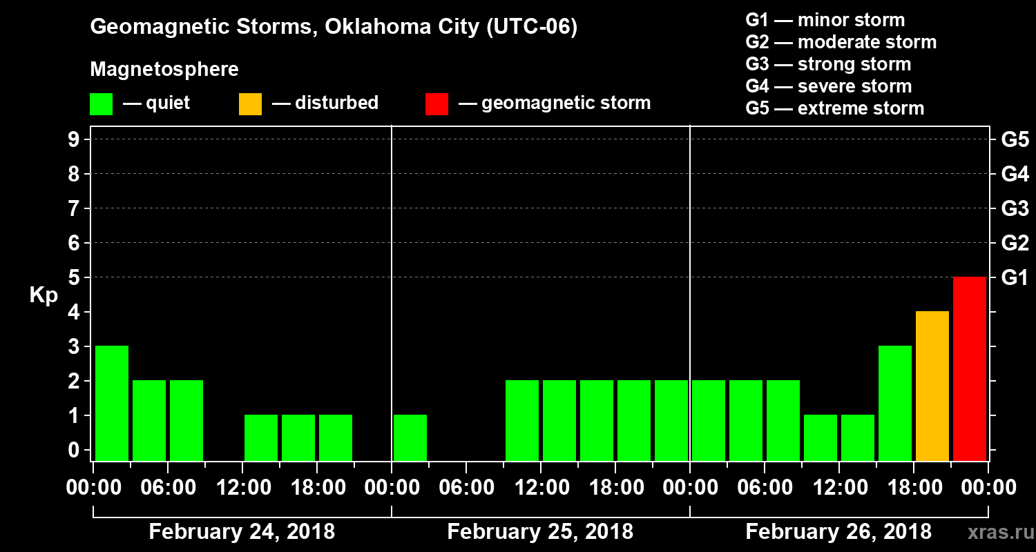 Geomagnetic storms in Oklahoma City on Feb 26, 2018