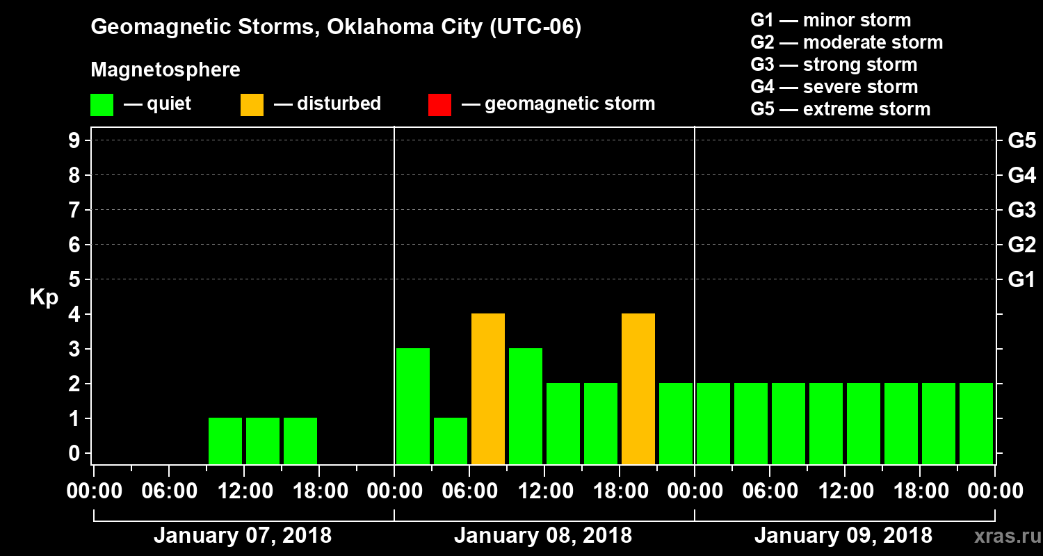 Geomagnetic storms in Oklahoma City — Jan 09, 2018
