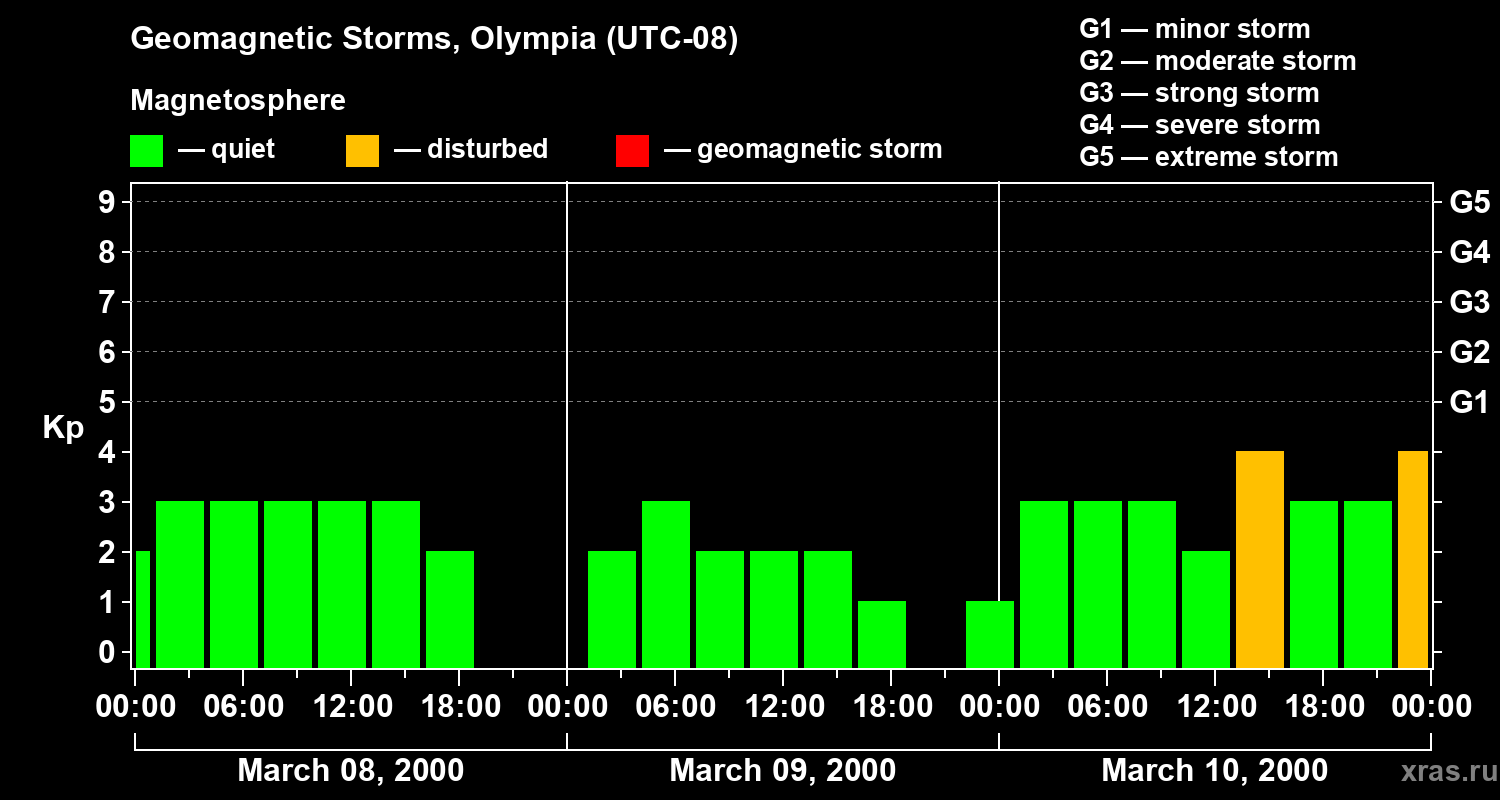 Geomagnetic storms in Olympia — Mar 10, 2000