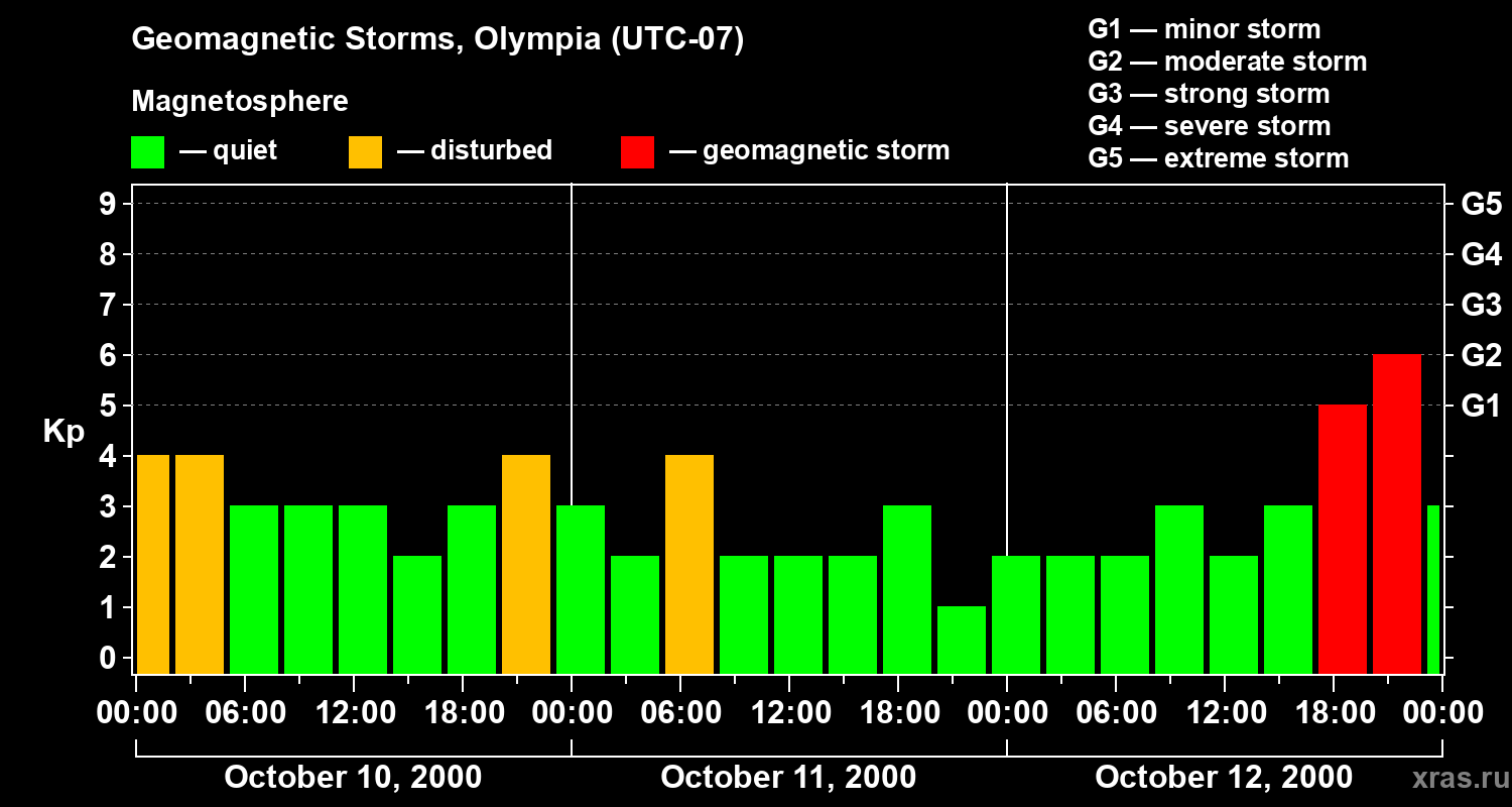 Geomagnetic storms in Olympia on Oct 12, 2000