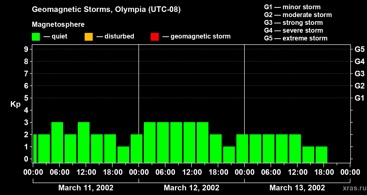 Geomagnetic storms in Olympia — Mar 13, 2002