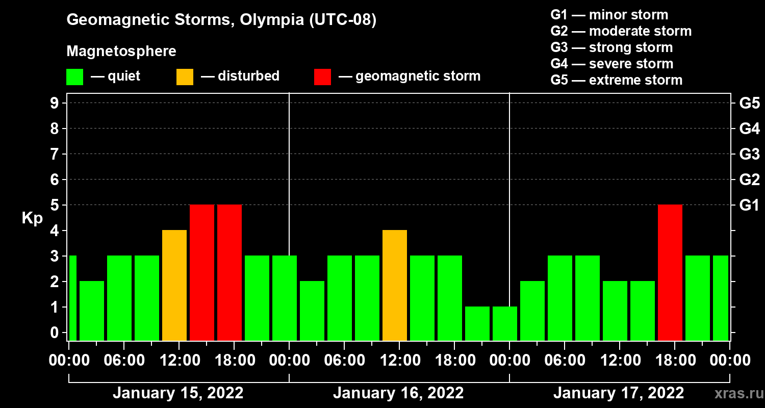 Geomagnetic storms in Olympia — Jan 17, 2022