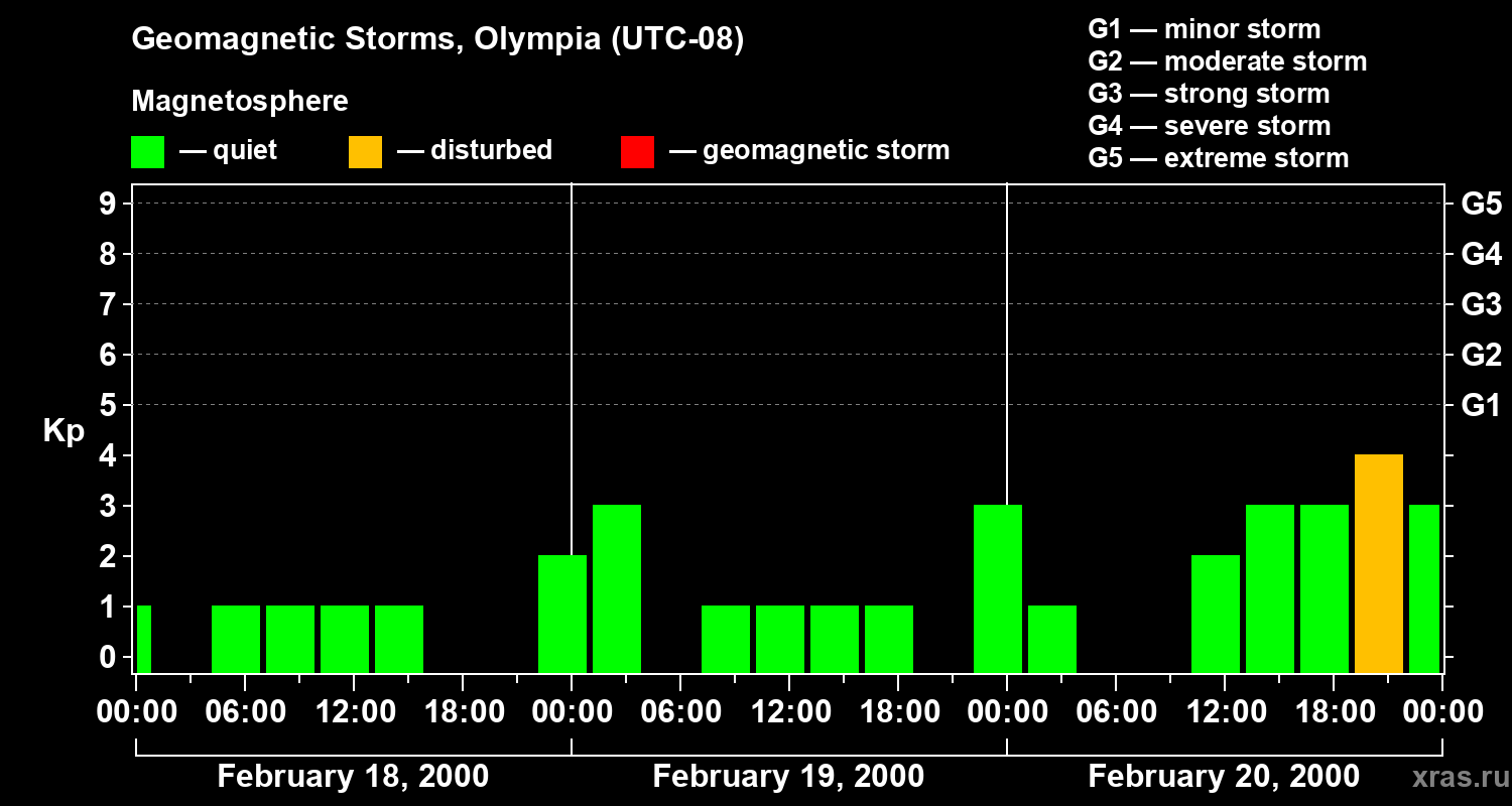 Geomagnetic storms in Olympia — Feb 20, 2000