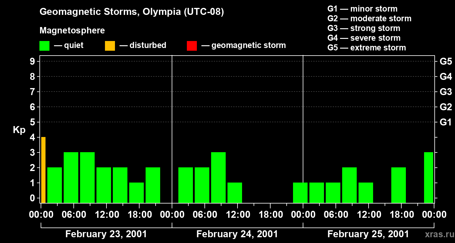 Geomagnetic storms in Olympia — Feb 25, 2001