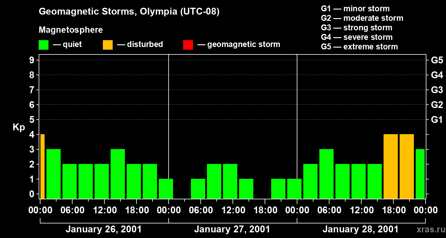 Geomagnetic storms in Olympia — Jan 28, 2001