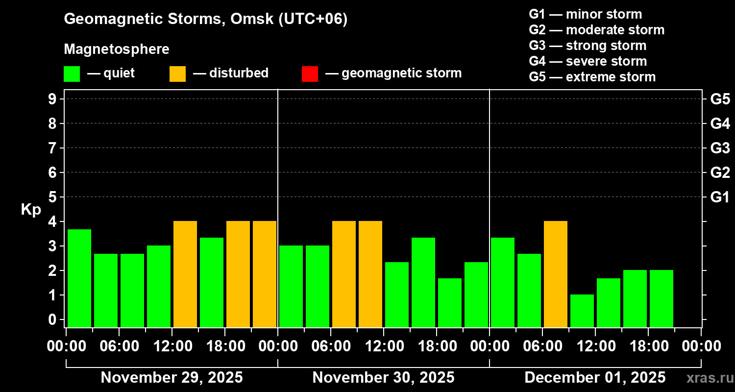 Geomagnetic storms in Omsk — Dec 01, 2025
