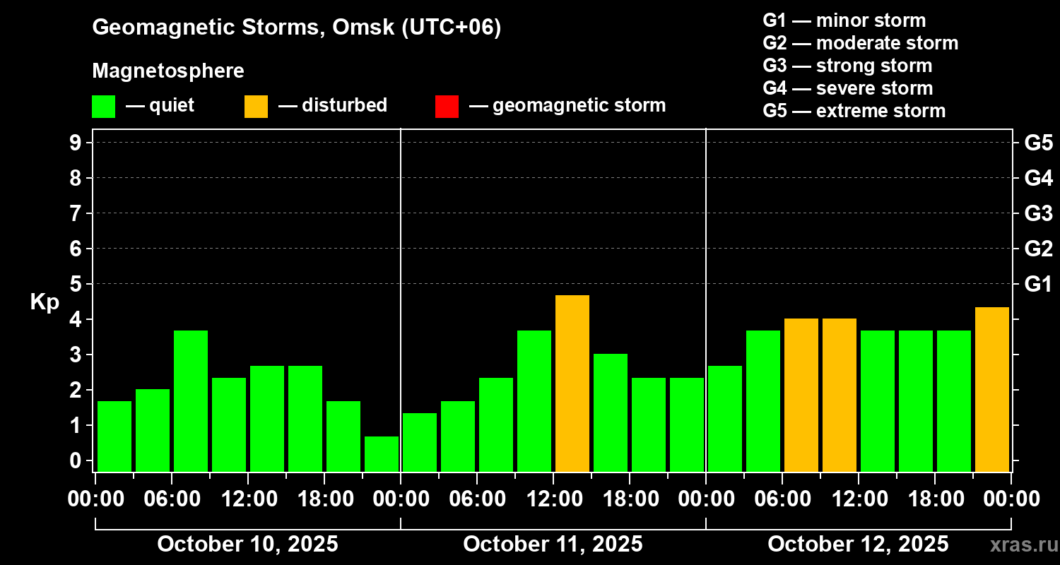 Geomagnetic storms in Omsk — Oct 12, 2025