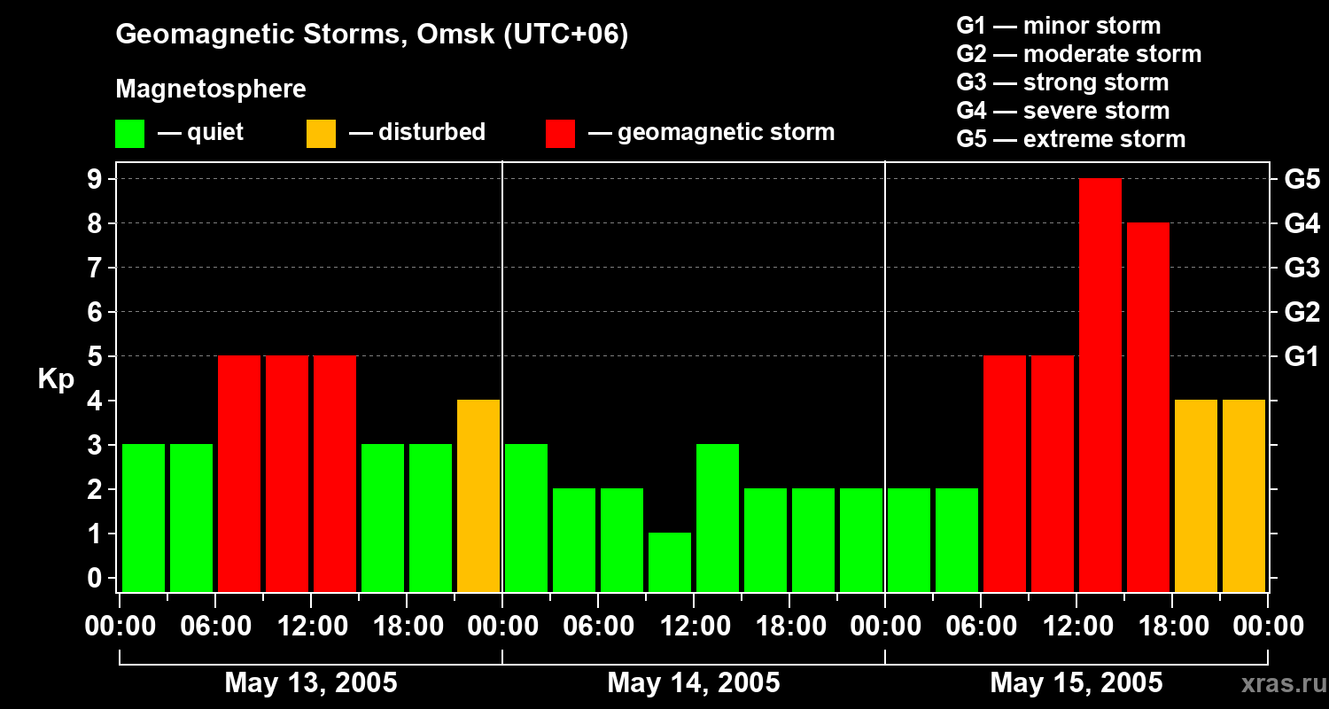 Geomagnetic storms in Omsk on May 15, 2005