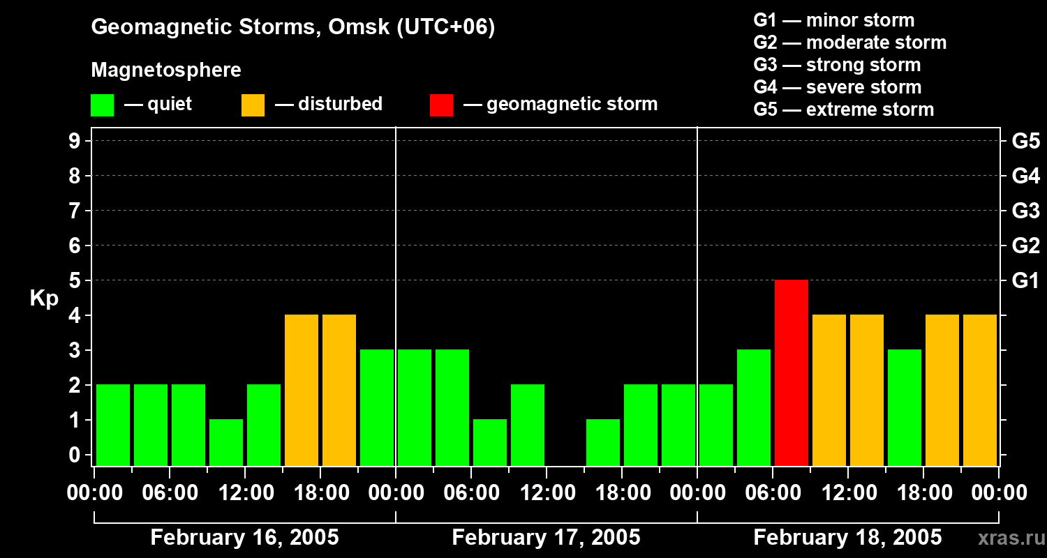 Geomagnetic storms in Omsk — Feb 18, 2005
