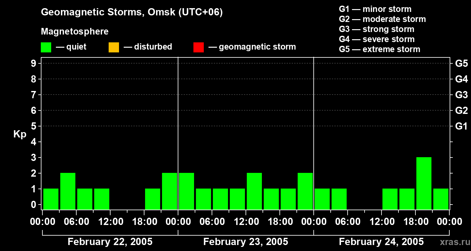 Geomagnetic storms in Omsk — Feb 24, 2005