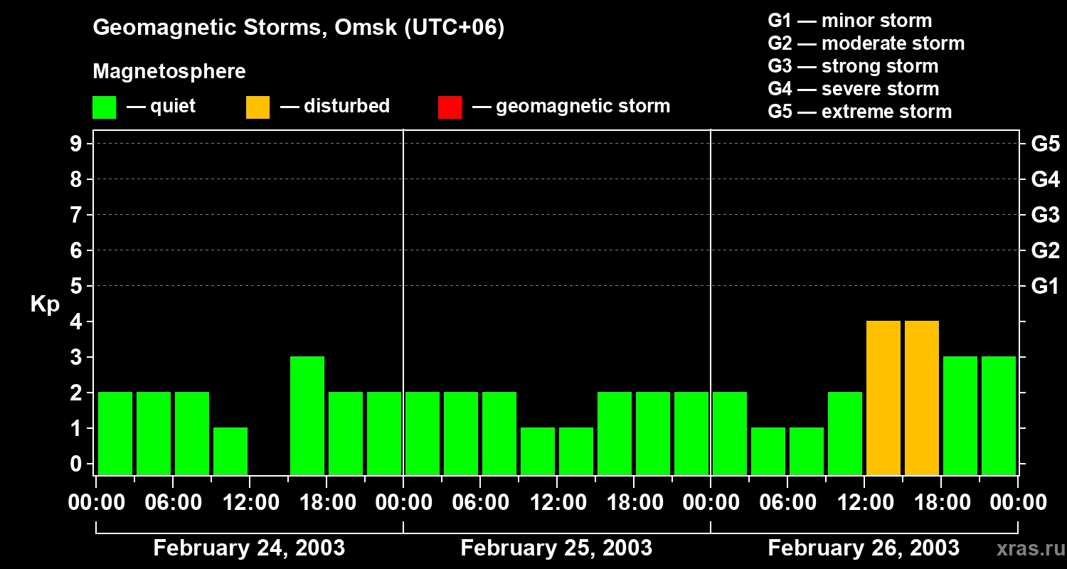 Geomagnetic storms in Omsk — Feb 26, 2003
