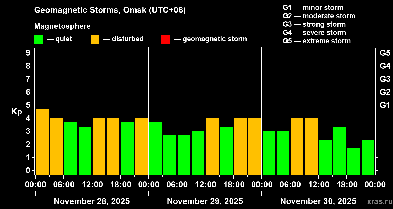 Geomagnetic storms in Omsk on Nov 30, 2025