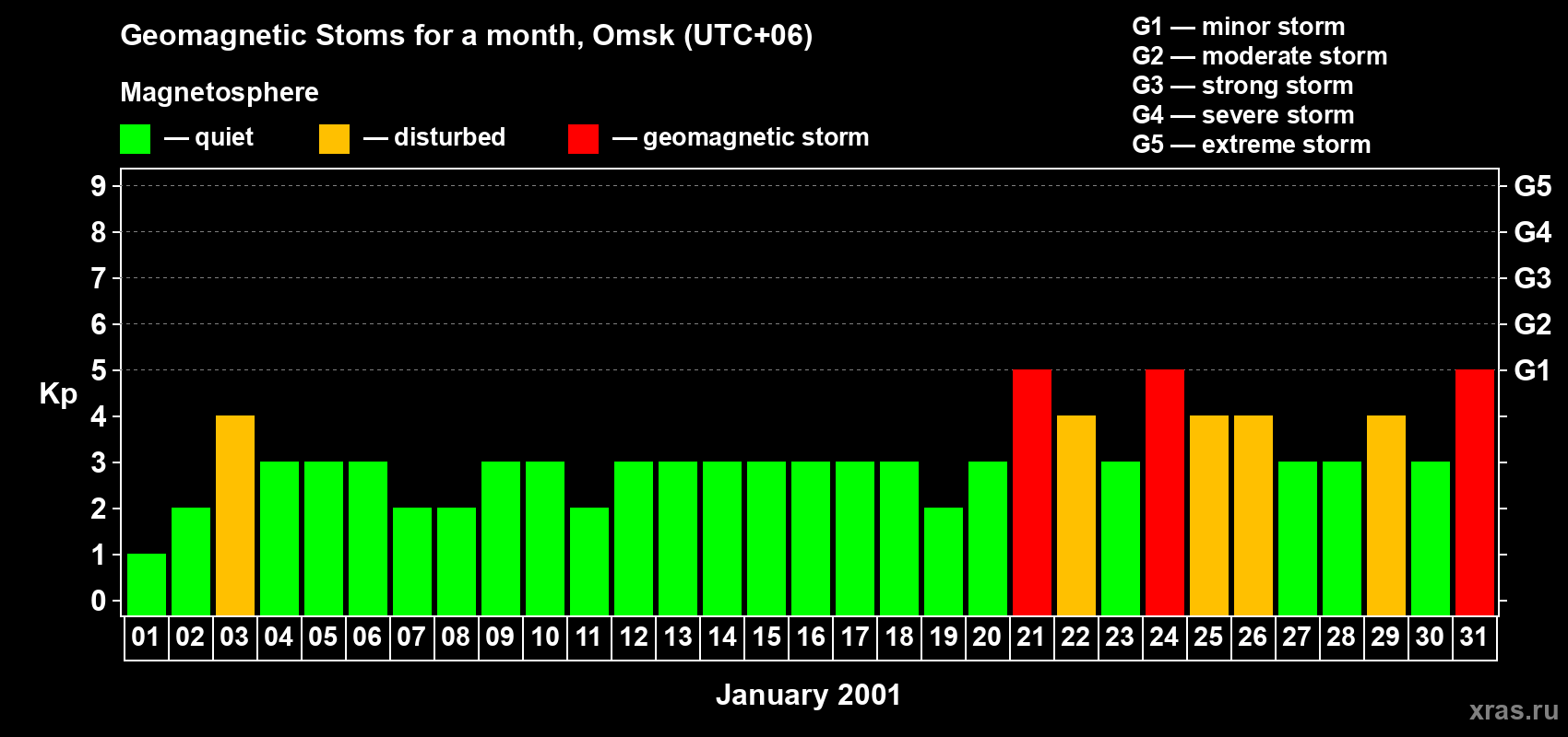 Geomagnetic storms in Omsk — Jan 31, 2001