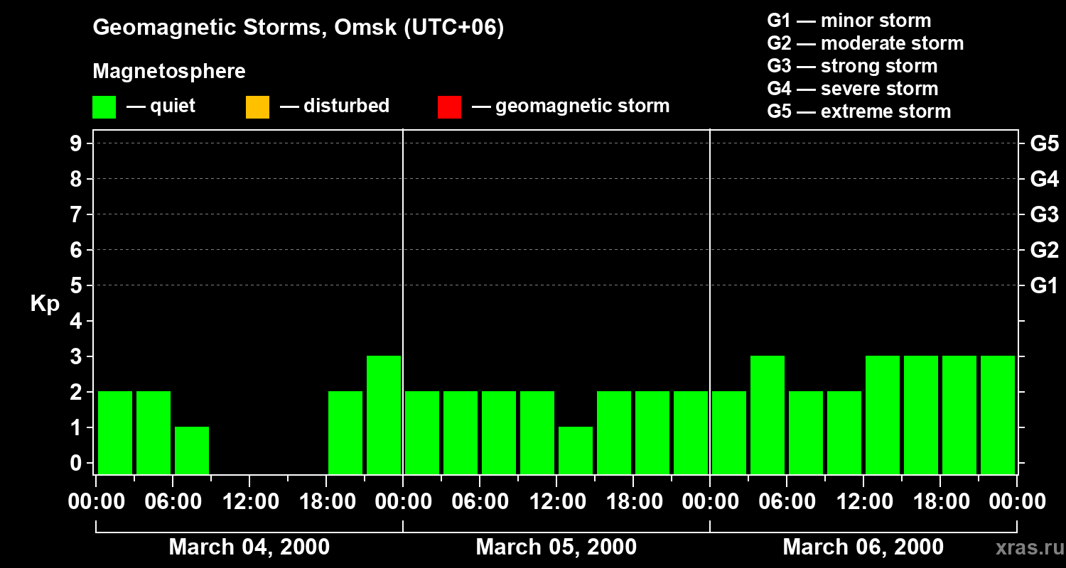 Geomagnetic storms in Omsk — Mar 06, 2000