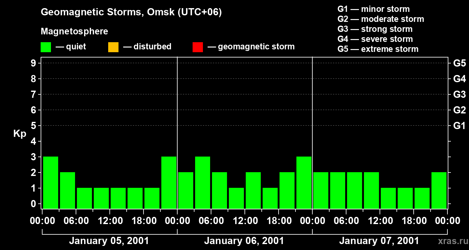 Geomagnetic storms in Omsk on Jan 07, 2001