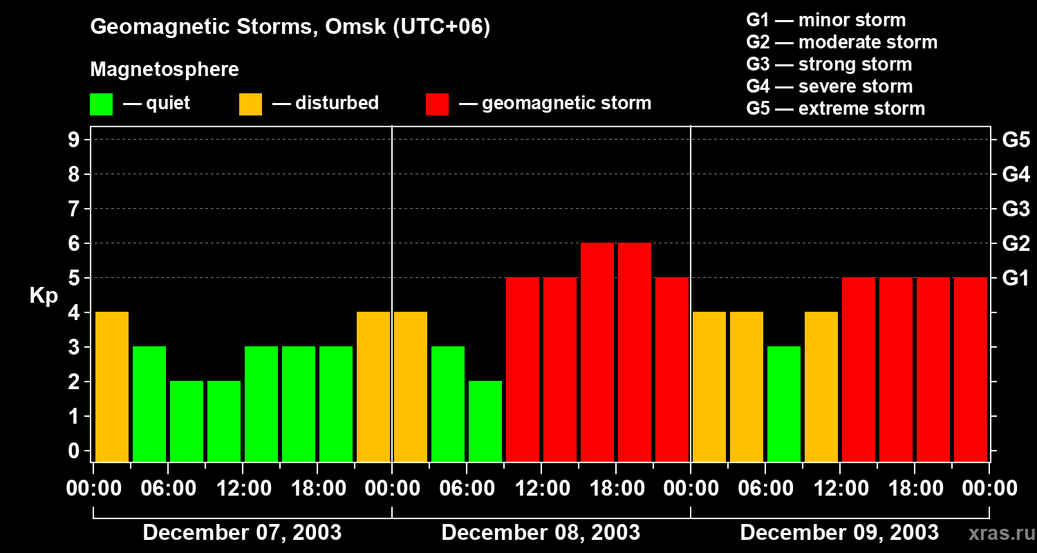 Geomagnetic storms in Omsk on Dec 09, 2003