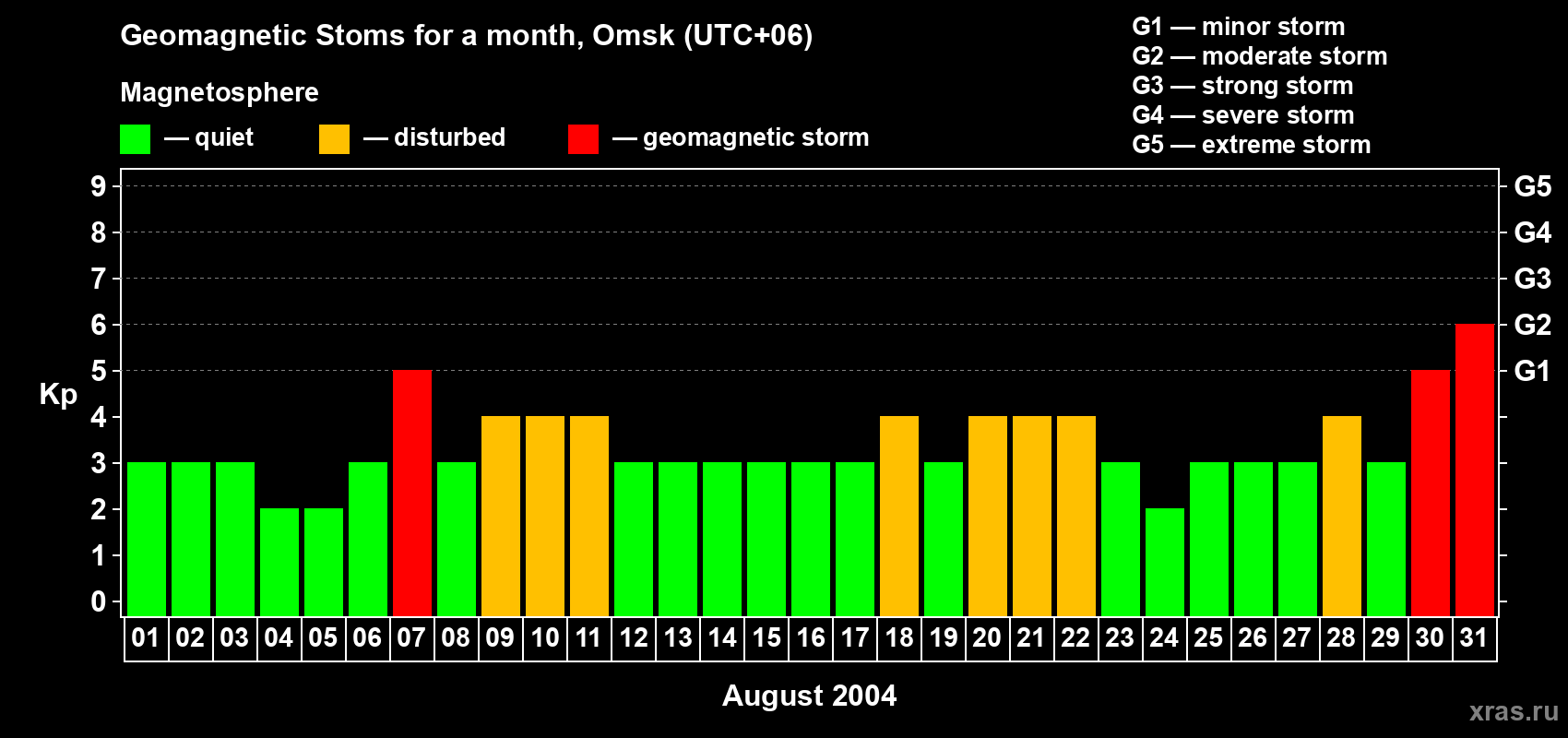 31 August 2004 — Magnetic storm of level G2