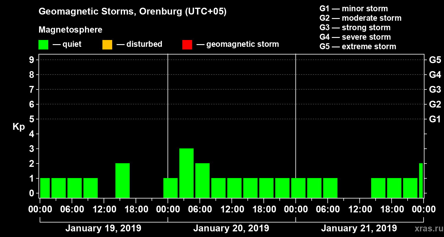 Geomagnetic storms in Orenburg on Jan 21, 2019
