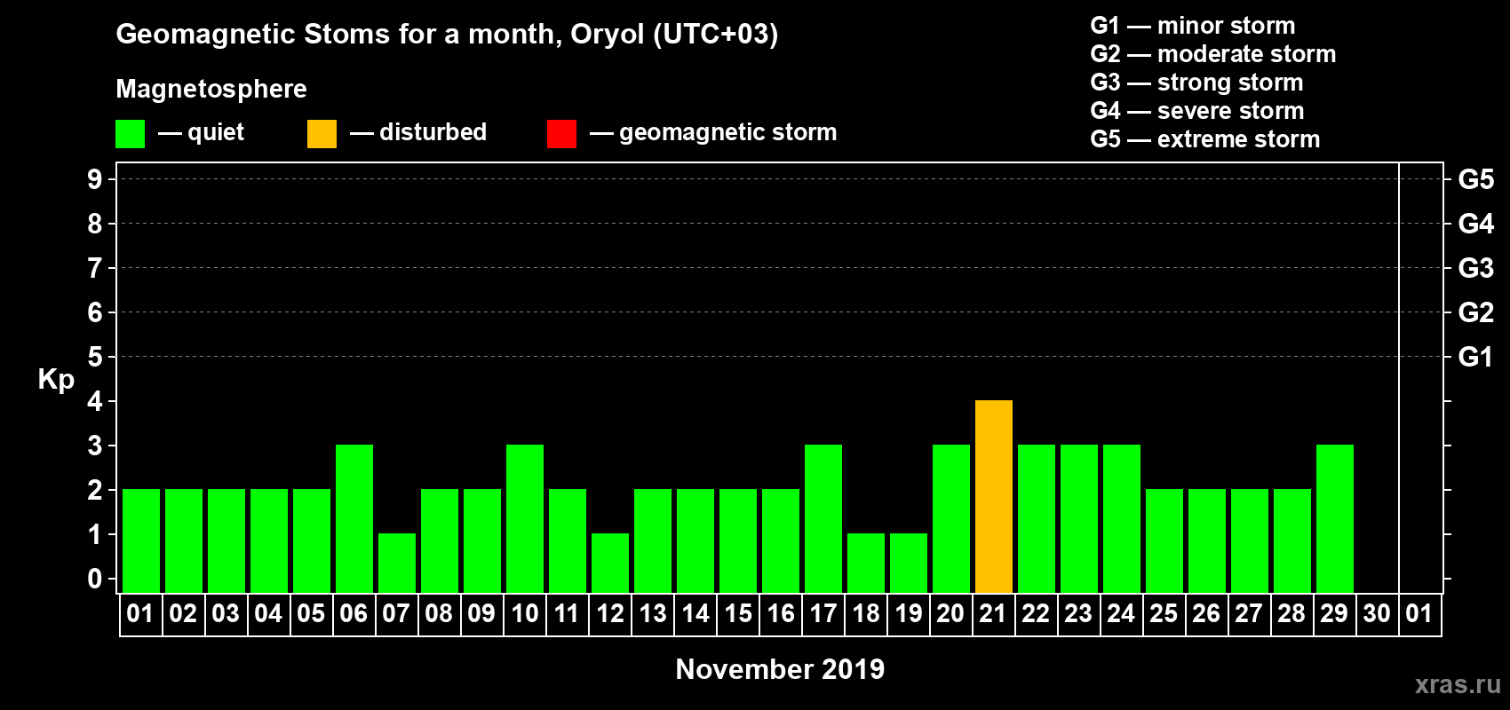 There were no days with an increased level of geomagnetic disturbance in November 2019