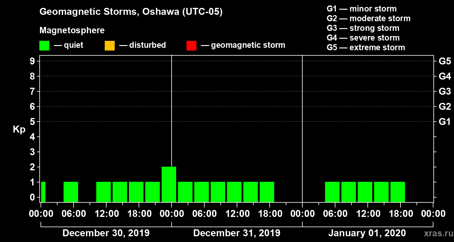 Geomagnetic storms in Oshawa — Jan 01, 2020