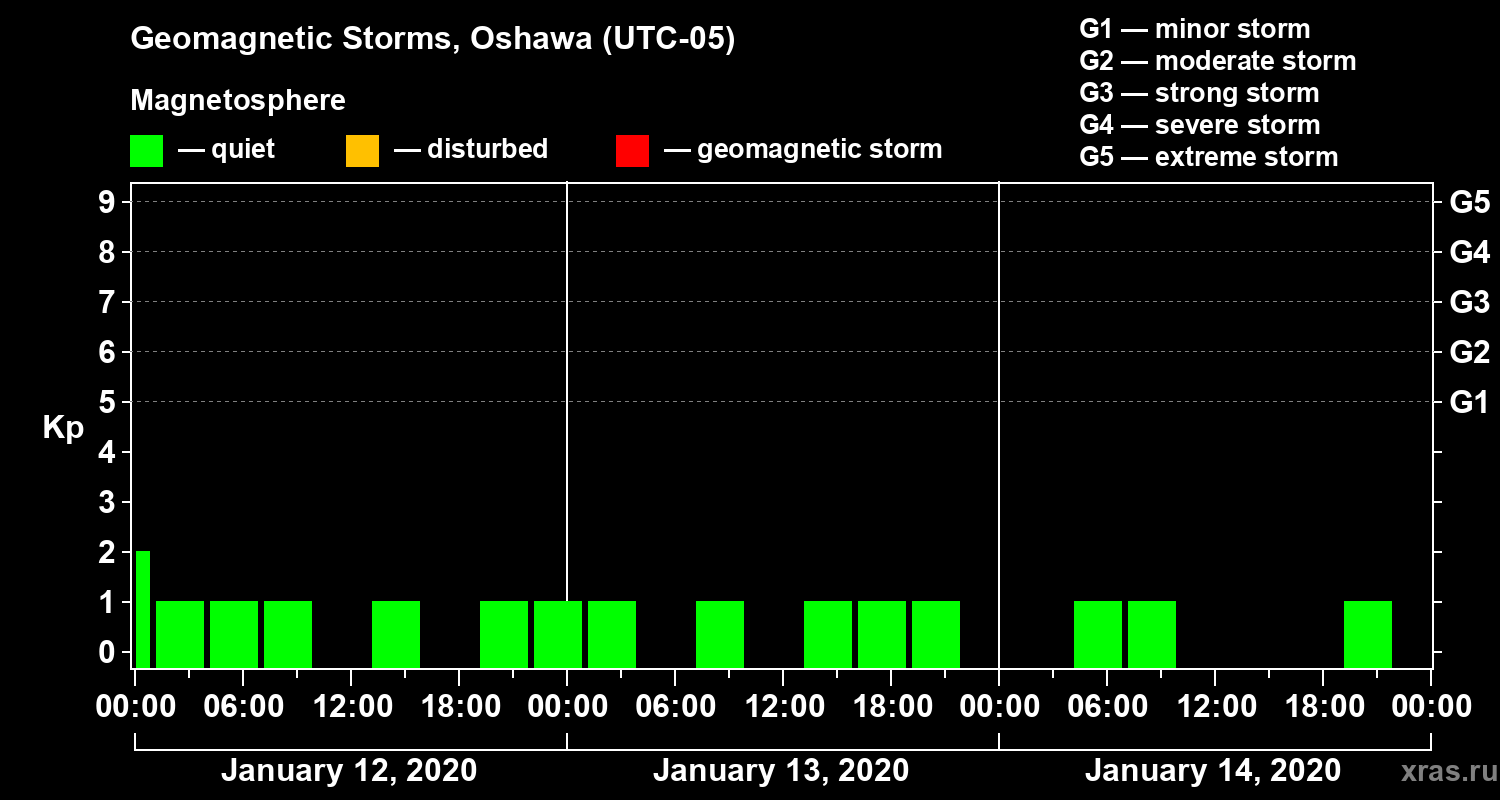 Geomagnetic storms in Oshawa — Jan 14, 2020