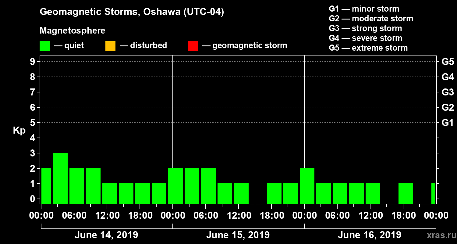 Geomagnetic storms in Oshawa — Jun 16, 2019